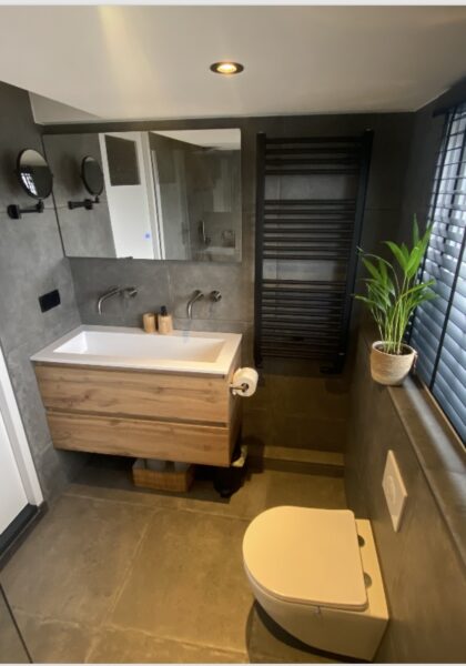 We zijn enorm blij met onze nieuwe badkamer en het vakwerk dat Paul geleverd heeft. Van meet af aan merkten we dat Paul zeer vakkundig en serieus met zijn vak bezig is. Ook bleek zijn ervaring en creatieve blik van grote waarde om de relatief weinige ruimte in onze badkamer optimaal te benutten. Ook tijdens een aantal onverwachte tegenslagen met de levering van onderdelen behield hij de rust en was hij assertief in het vinden van een oplossing. Dit alles in combinatie met zijn vriendelijkheid maakte het geheel een uiterst positieve ervaring.