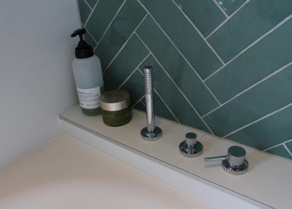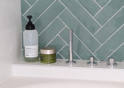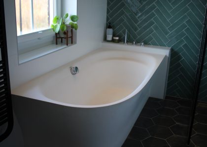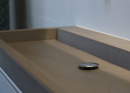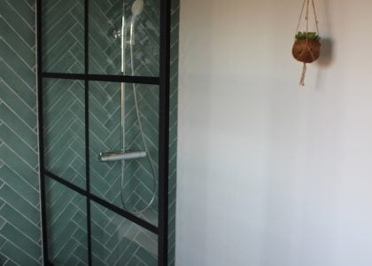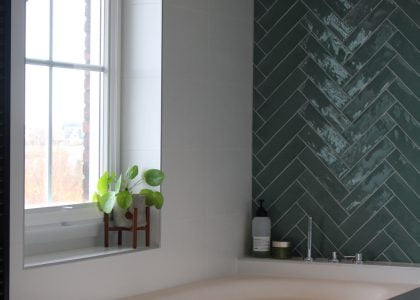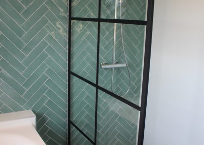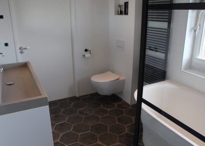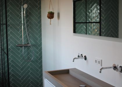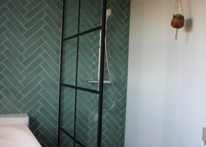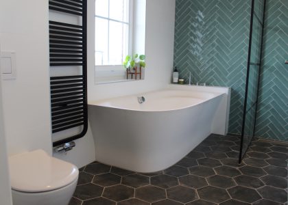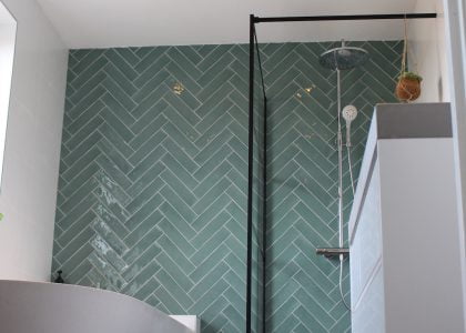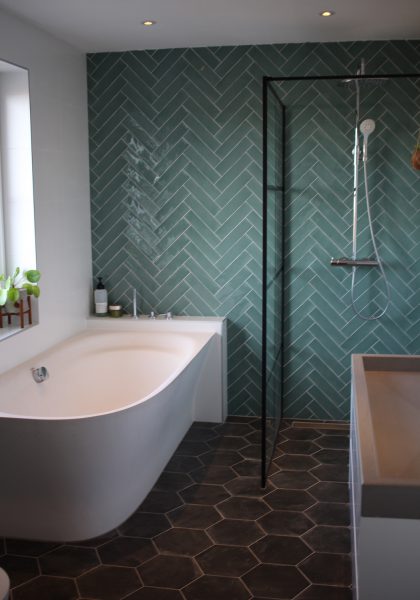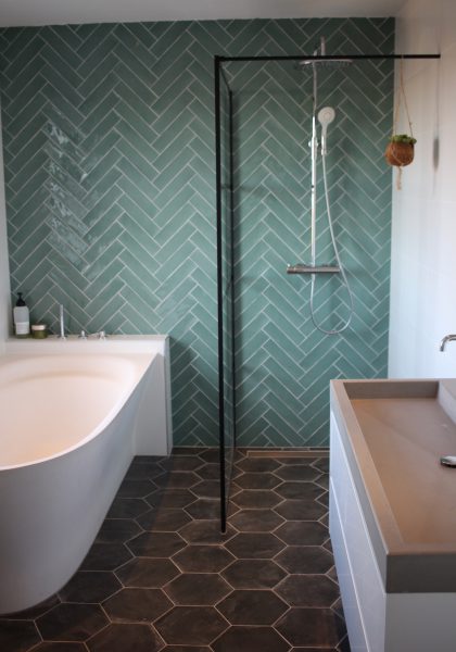We hebben het hem niet makkelijk gemaakt met een visgraat muur en een hexagon vloer, maar alles ziet er super strak uit en is tot in de puntjes perfect.