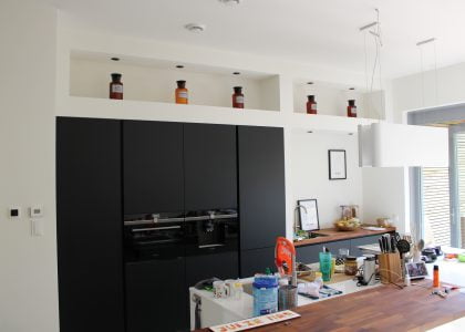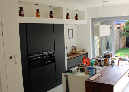 Ook waar het “onderaannemers” betrof heeft Paul de eindverantwoordelijkheid genomen en alles in goede banen geleid (o.a. stukadoors en schilders in de hele woning), waardoor alles tijdig en naar enorme tevredenheid is opgeleverd.